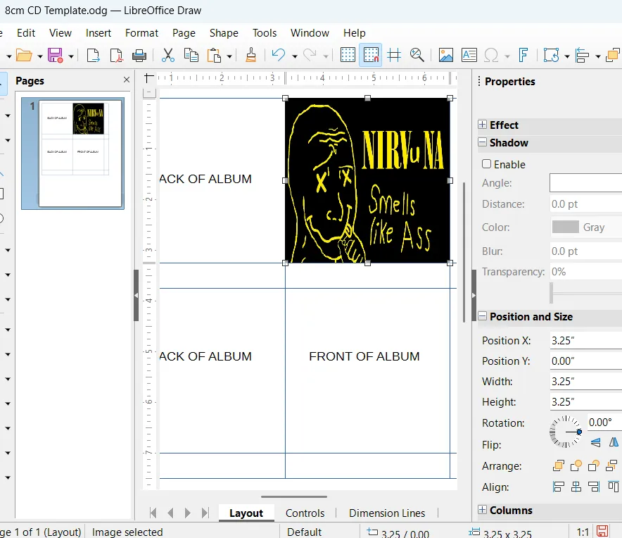 drag your own album art onto the LibreOffice Draw template :D